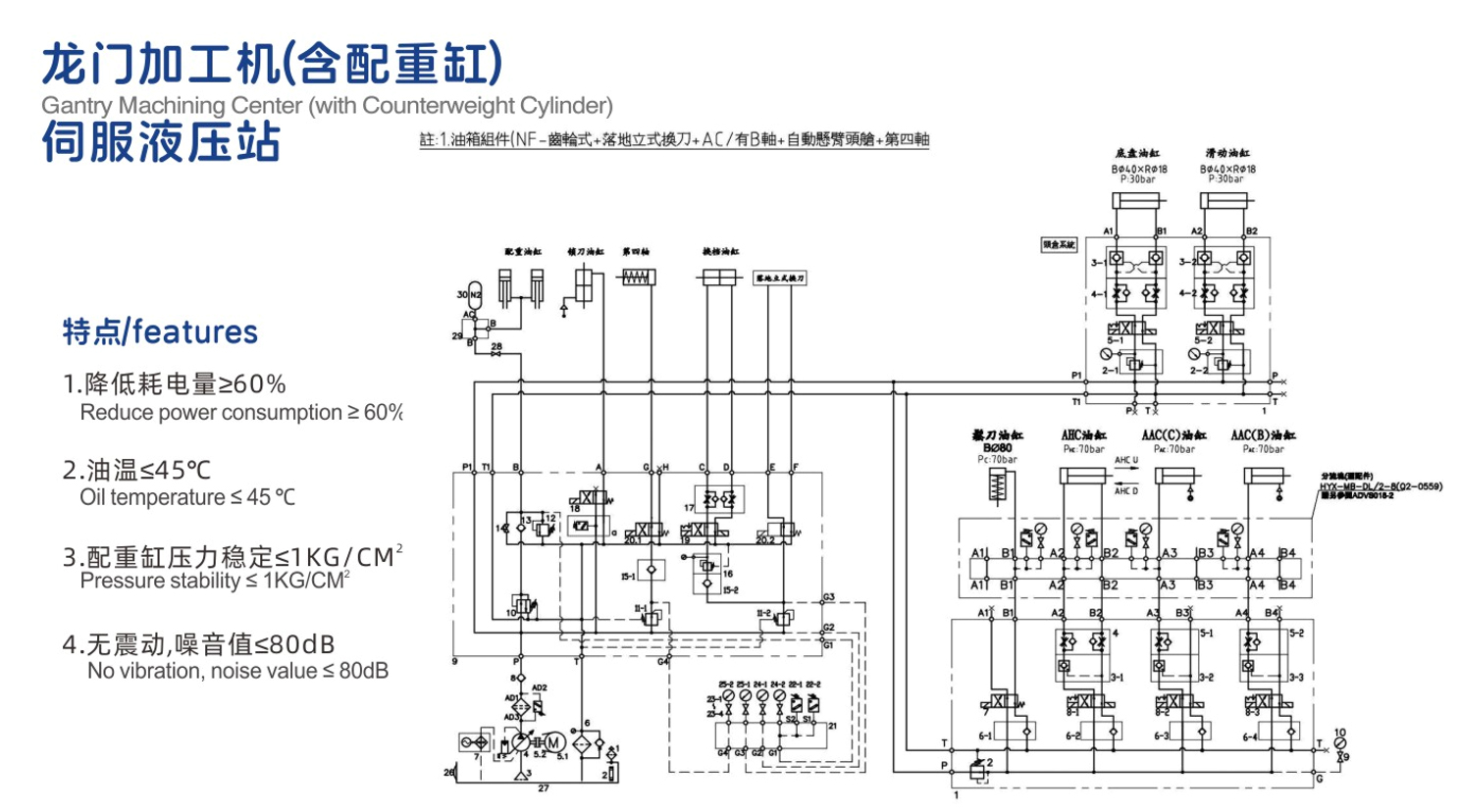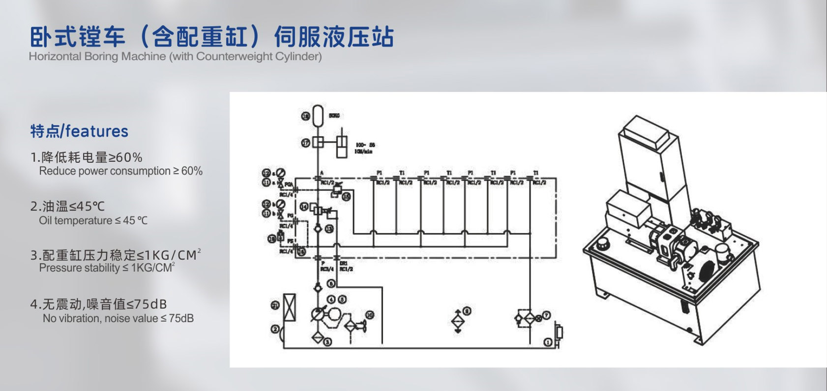 液壓站工作噪音最高僅75分貝(含環(huán)境噪音)。