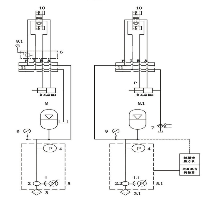 伺服液壓站采用壓力與速度閉環(huán)控制0-10V高精度的壓力傳感器,通過伺服驅(qū)動(dòng)器精確調(diào)控,使油壓波動(dòng)穩(wěn)定在+-1(kg/cm2)以內(nèi)。